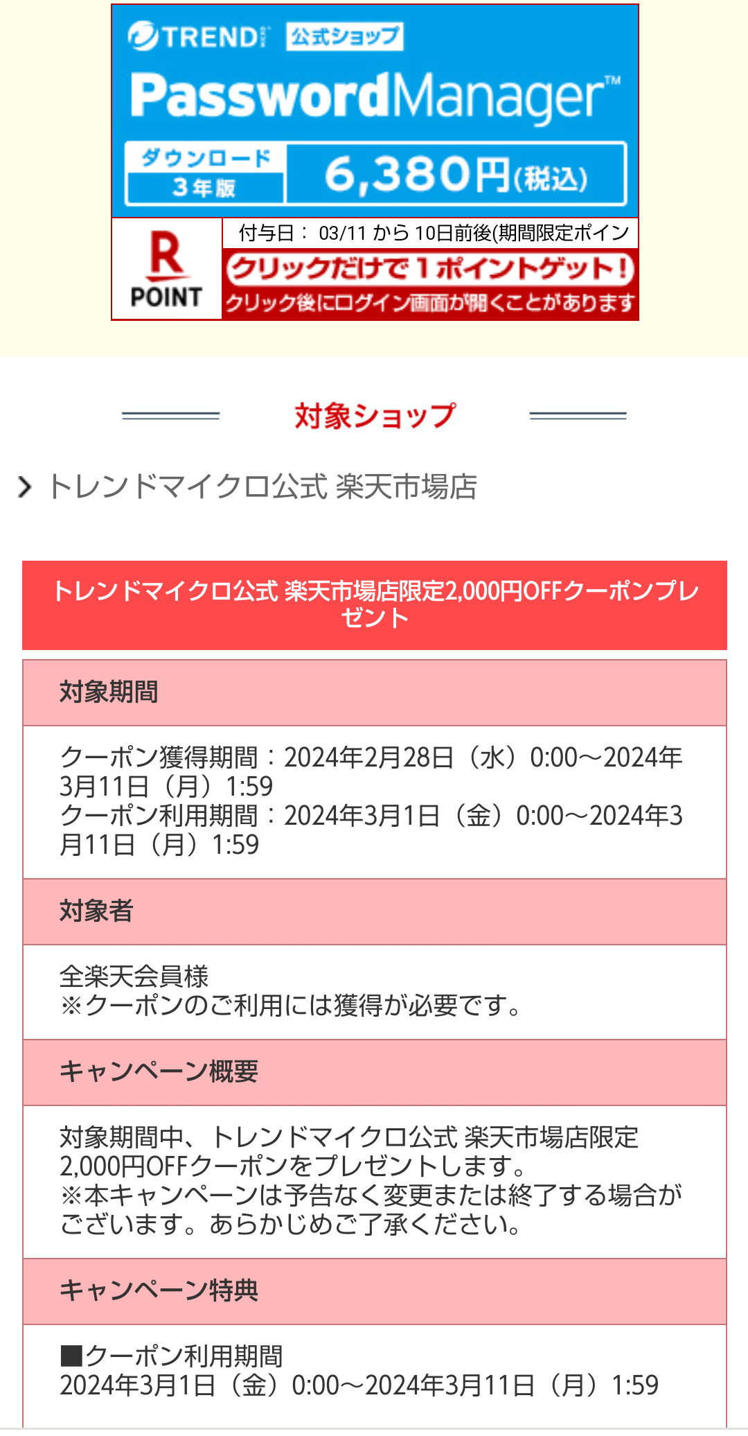 トレンドマイクロ公式 楽天市場店限定2,000円OFFクーポンキャンペーン!!