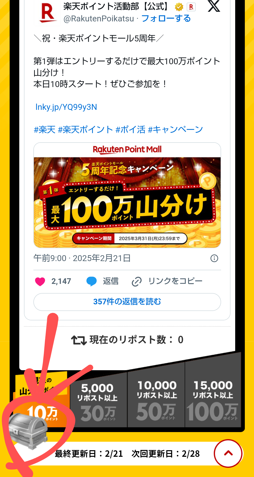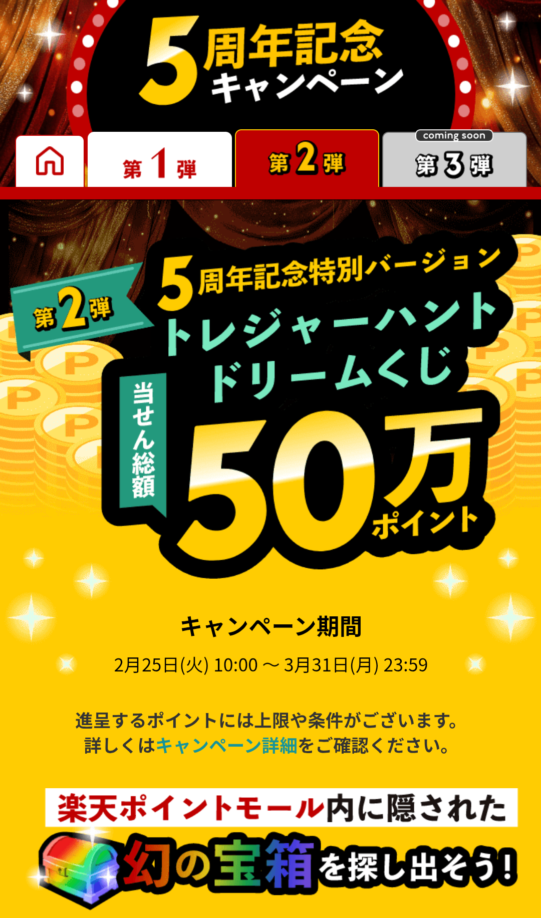 第1弾 エントリーするだけ!最大100万ポイント山分け! | 楽天ポイントモール5周年記念キャンペーン | 楽天ポイントモール