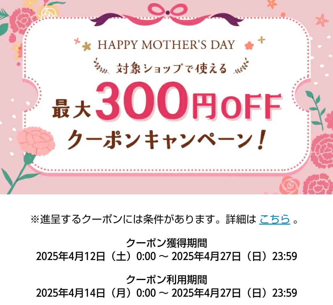対象ショップで使える最大300円OFFクーポンキャンペーン!
