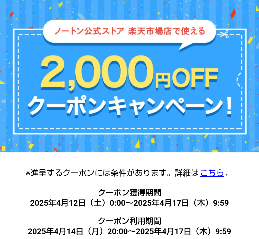 ノートン公式ストア 楽天市場店限定2,000円OFFクーポンキャンペーン!!
