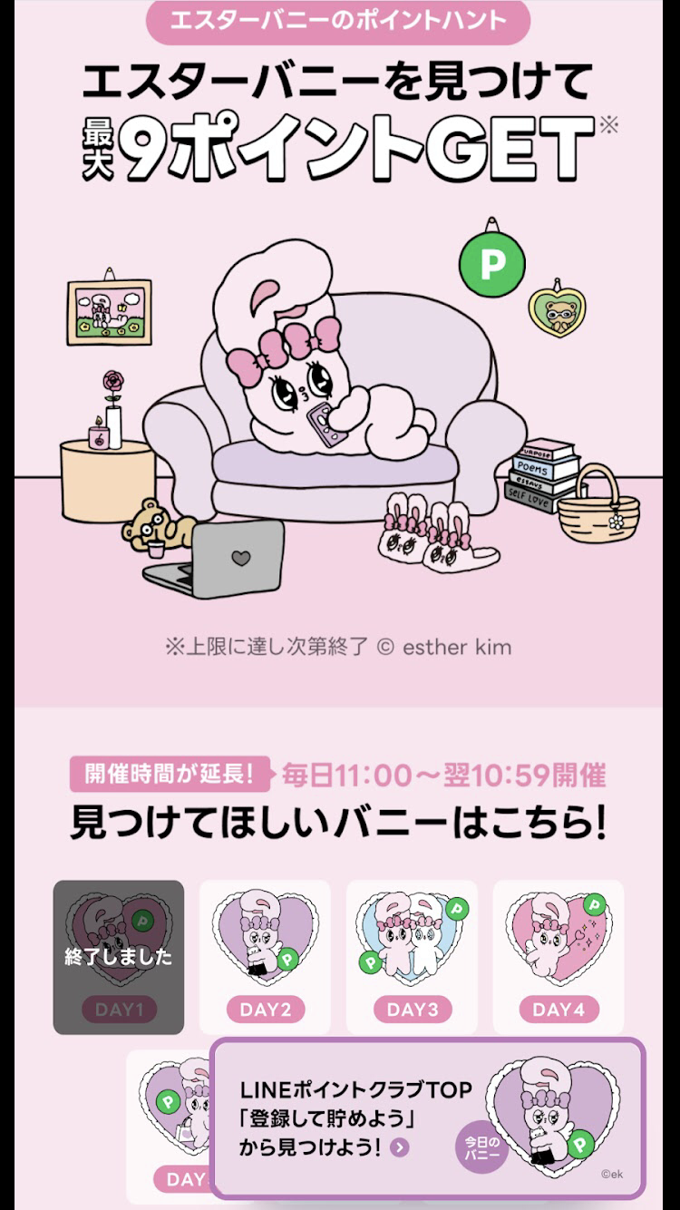 最大9ポイントGET!エスターバニーのポイントハント | キャンペーン | LINE ポイントクラブ
