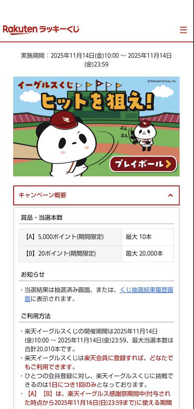 【楽天市場】楽天イーグルス感謝祭|ポイント当たる!楽天イーグルスくじ