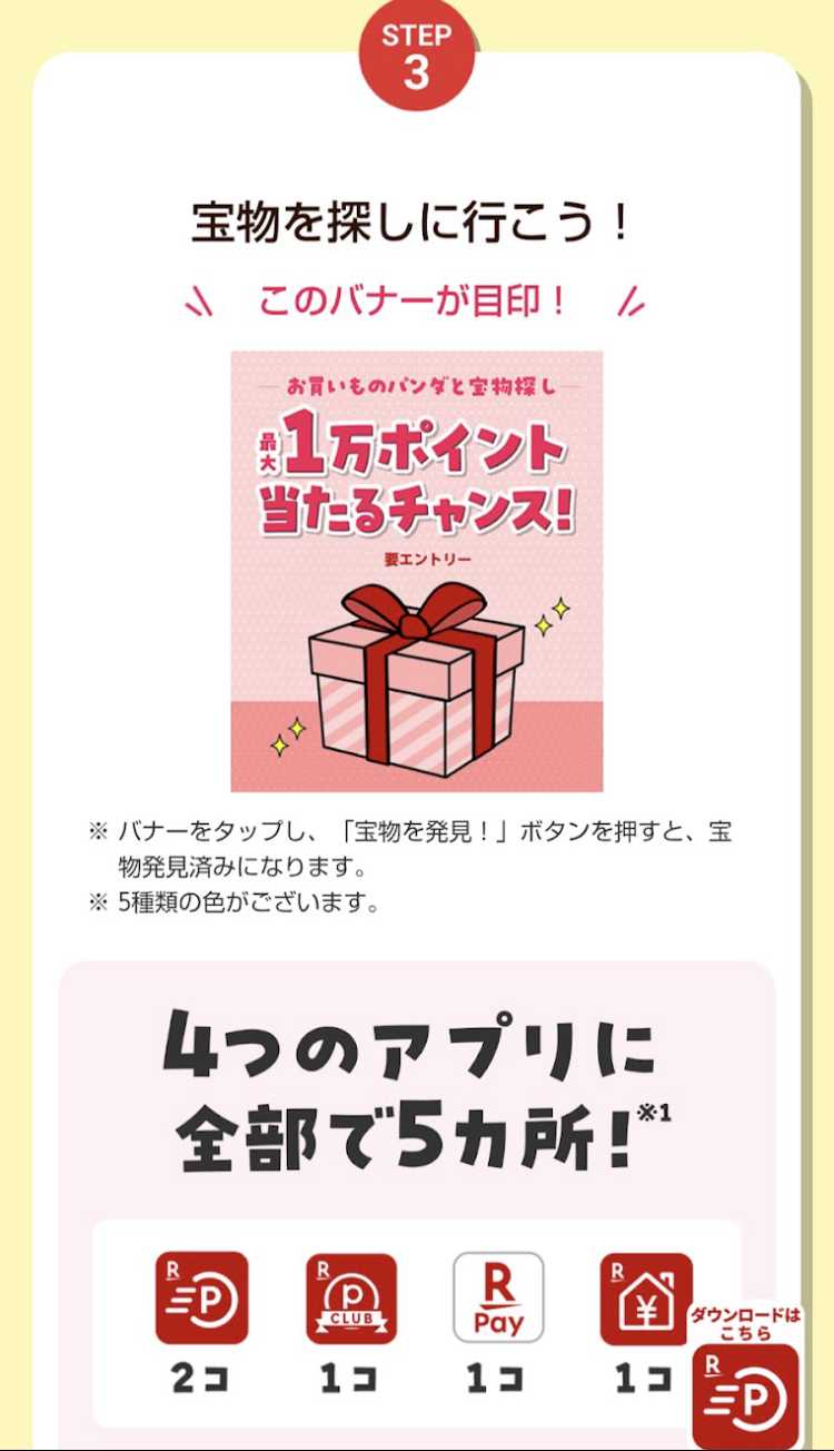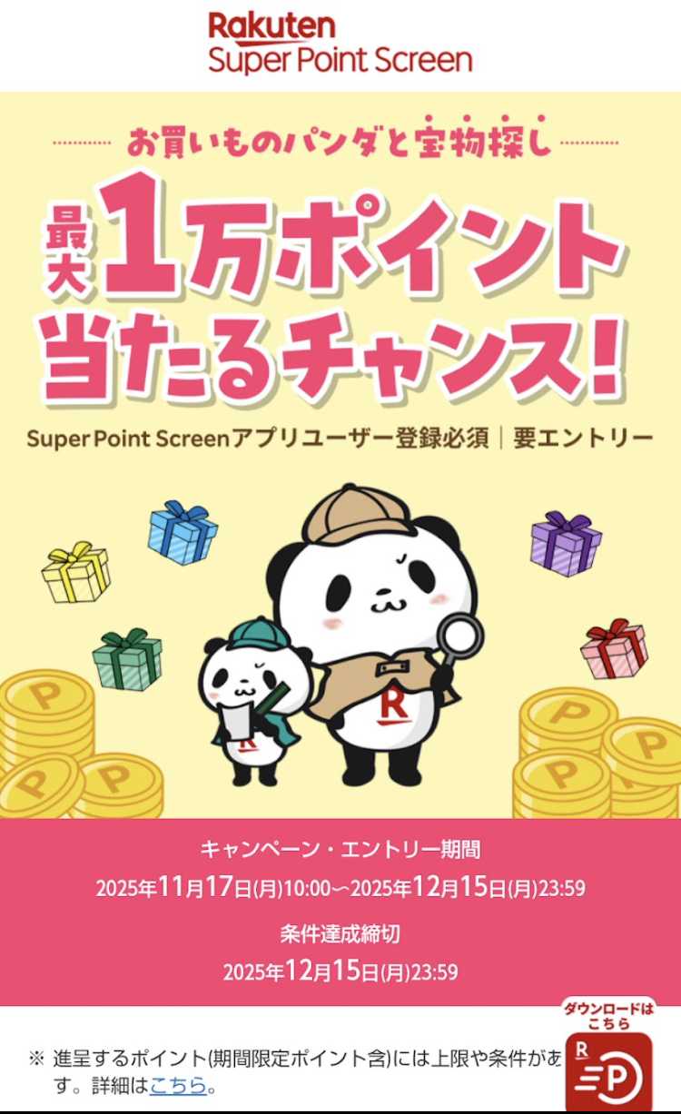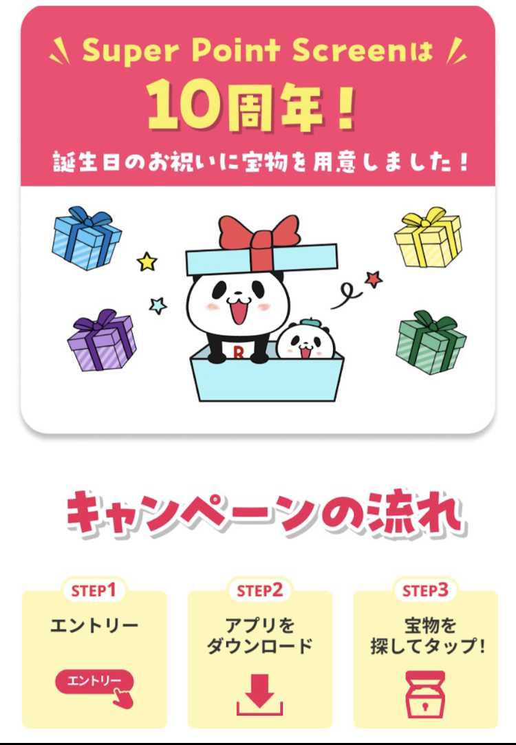 お買いものパンダと宝物探し!最大10,000ポイント当たる!楽天スーパーポイントスクリーン 本家1 本家2 ポイントクラブ pay 家計簿
