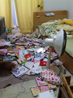 にほんブログ村夜 怒りが大き過ぎると笑えてくるという体験を・・・事の発端は 夕方に息子と娘で 勉強している時兄ちゃんは 自分の卒業テストの勉強もせずに 妹の学年末テストの勉強に付き合ってくれていました・・・が どうも 娘の方は乗り気じゃないのが 私にも見て取れて内心 「コレは ヤバイねっ・・・」と思っていた矢先!!妹の嫌ぁ~な態度にブチ切れた兄は「もう知らんっ!!!!!!」と2Fに どたどた~と上がっていきドタンバッタン 何かに八つ当たりしている様子・・・まぁ わからんでもないわってくらい娘の態度が悪かったので 自分の部屋で 暴れてるんだと思っていた。。。がっ!違ったのであ~る・・・娘がリビングで勉強を終えて自室に寝に行ったと思ったら泣きながら降りてきた・・・「部屋が ぐちゃぐちゃ 兄ちゃんが・・・」と 言ってきり 泣いている・・・「何やとぉ~~~! あの音は 妹の部屋 ぐちゃぐちゃにしてた音なんか!!」と 怒りまくりながら2Fに・・・娘の部屋を見て 愕然「何じゃこりゃぁ~~~!」怒りが頂点 隣の部屋で寝ている息子の部屋のドアを開け「何じゃこりゃ~!やり過ぎじゃ~~~! 物には限度っちゅ~もんがあるやろがぁ~!」「ほんなん それくらいイライラして ブチ切れたんやもん!」「ブチ切れたら こんなことしても良いんやな? ほな 今 この状況に 私は おまえに ブチ切れとんじゃ! おまえの部屋 ぐちゃぐちゃにして良いんか? あかんやろ? そんな事されたら嫌やろ? 自分がされて嫌な事 悲しい事は 人にしたら あかんのじゃ~~~~~~! 確かに ○○(娘)の態度は アレはあかん! おまえが怒ったんも わかる・・・ しかし コレは 絶対許さ~~~んっ!」と 夜の11:00に 大声出して怒っていると寝かかっていた旦那が上がってきて息子をしかり 娘の態度もこんな事になった原因なので改めるように言い喧嘩両成敗?にしたので息子の気持ちも納まり「今回は やりすぎたと思う」と反省娘も「ごめんなさい(涙)」と自分の教えてもらう態度じゃなかった事を反省もう 遅いので 寝ることにしましょうとなったものの・・・娘の部屋は 嵐が通り過ぎたよう?な様状態・・・ベットの上も ぐちゃぐちゃなので寝れるようにだけ 片付けながら怒りが納まらないものの何だか 不思議な笑いが込み上げてきて「怒り過ぎると笑えるわっ」と・・・何でしょね 感情のコントロールが狂うのかね? コレが行き過ぎると 発狂なのかも?ヤバイ ヤバイ・・・(汗)まっ 今回の事で兄ちゃん家庭教師も アッと言う間に終了~~~(爆)どうもね~ バイト代で奴は 不服だったようでね~私が 冗談で「バイト代は 出来高制なっ 成績上がらんかったら 無しなぁ~」と言う 冗談を真に受けやがって・・・一所懸命教えようとしてるのに覚える気が無い 妹にブチ切れたんでしょう・・・が・・・もう 無理でしょうね~教えるのも 教えられるのも コリゴリって 感じでしょうね~ 2人とも・・・さて 部屋の状態が あんまり!だったので写真を撮りました・・・びふぉー&あふたーで ご紹介します(爆)びふぉ~そして 朝から 一生懸命 片付けた あふた~散乱していた漫画本も まぁ なんと言うことでしょ~ こんなに すっきり収納~~~♪はぁ~ 折角の私の休み・・・半日パァ~・・・ですが 今 目の前で兄・妹 仲良くTVを笑いながら見ています・・・この アホ兄妹めぇ~~~!母は そんな役回りですわっ(涙)※本来は アサイーダイエットのモニター記事を 書く予定でしたが 内容を変えてお送りしました(笑)サブブログ1 アメーバブログ『アラフォー主婦のたわごと。。。』サブブログ2 FC2ブログ『頑張れ!アラフォー主婦♪』こちらも、よろしくです♪
