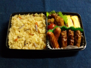 にほんブログ村ドヨォォ─(lll-ω-)─ォォン…今日から お弁当再開です・・・超久しぶりなんで面倒&「何入れたら ええん?」状態。おかず な~んも考えてなかったので取り合えず・・・昨日の晩に 味ご飯を朝 炊けるようにセットして寝た。※味ご飯=炊き込みご飯 三重県民は 味ご飯又は味飯と言う・・・。まったく おかずがマッチしてないやん! il|| (´△`|||)ゞ ァィャァ…まっ・・・あんまり 今年は気にしないでいこう!!春からは 無事に?どこかの高校に合格すれば・・・娘の分も増え 3人分のお弁当を作る破目に・・・Σ(゚v゚;)ハッ!!もとい・・・ 作る事になるのでそうそう お弁当如きで落ち込んだり悩んだりしてられん!今年のお弁当のスローガン『お腹がいっぱいになれば良い』それくらいの気持ちでいきます。**♪**ょろ**♪**♪ヽ(-∀-★))こちらは18禁ご自身の責任でご覧下さいませ。一切苦情は受け付けません。サブブログ1 アメーバブログ『アラフォー主婦のたわごと。。。』サブブログ2 FC2ブログ『頑張れ!アラフォー主婦♪』こちらも、よろしくです♪