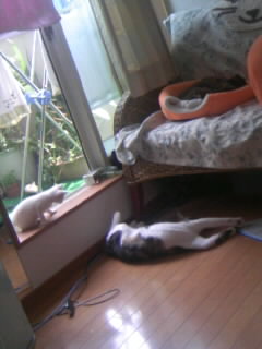 つづき シロの子猫は警察に届けたら、処分はこちらに任せてと言われ、保健所行き?なの?と言われてるようで、それじゃあと 近くの動物病院に相談したら、しっかり治療費と時間外手当を請求されたうえ、結局預かってもらえなかったので、家に連れて帰るしかなくなってしまってフロントラインをやってもすぐにはノミとダニがなくならないので、隔離をしないといけないので、それから毎日てんてこまいで、寝不足でしんどかった。 でも4日目ぐらいから、徐々にうちのムムやミミと仲良くなっていくし、 でも、でも、でも、あわてて里親を探してしまって とても大切にしてくれそうな里親さんが見つかってしまってシロはもらわれてしまって、今日は ムムとなんだかさみしい気分です。 ムムごめんね。せっかくお友達ができたのに…探さないほうが良かったかなあ…