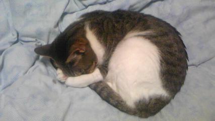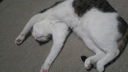 暑さのせいで少し疲れてるみたいで寝てばかり・・・起きてきたら、にゃぁ~にゃぁ~ベランダに出せってうるさい。ベランダでゴロゴロするのが好きみたい。