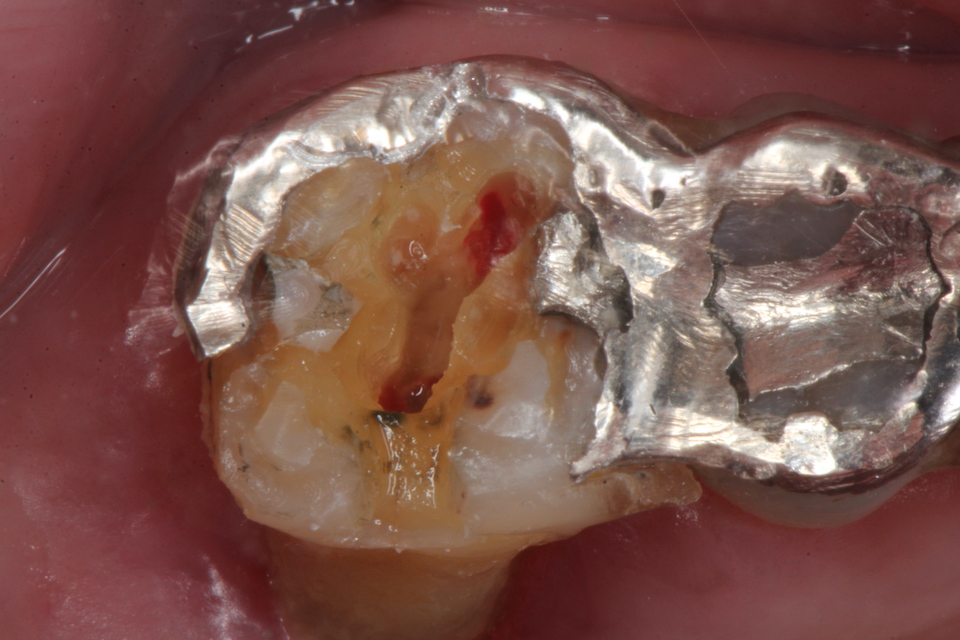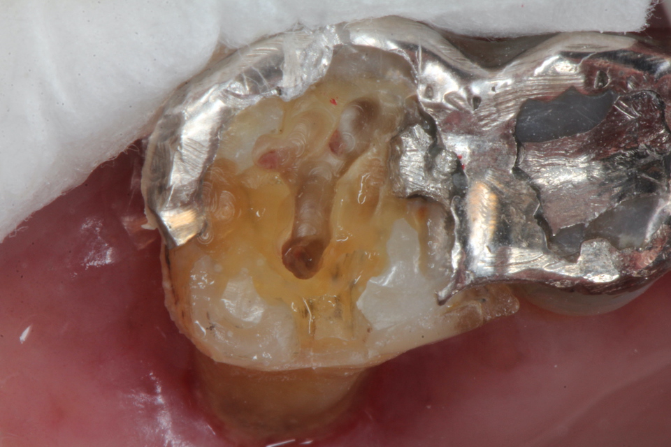 ということで、歯髄は死にかけているな。。と思って天蓋を除去してみた。