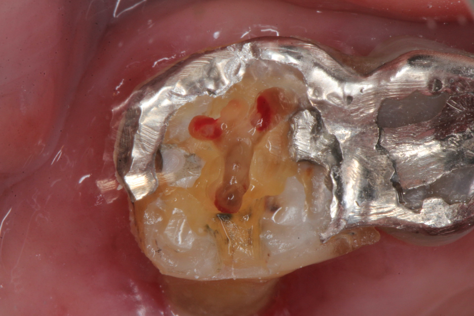 天蓋を穿通した。少し出血している。死にかかっている歯に麻酔は要らない。麻酔とは健全な痛みを感じる歯を削る時に必要なだけだ。麻酔が必要な歯を削るということは僕に言わせれば、過剰診療と言っても良い。