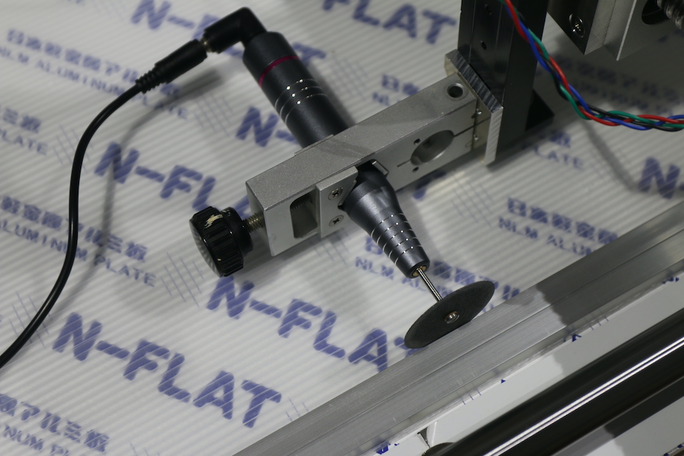 ワーク幅300mmに拡幅、ベルト駆動X軸下を8mmに、Y軸とX軸の直角調整など