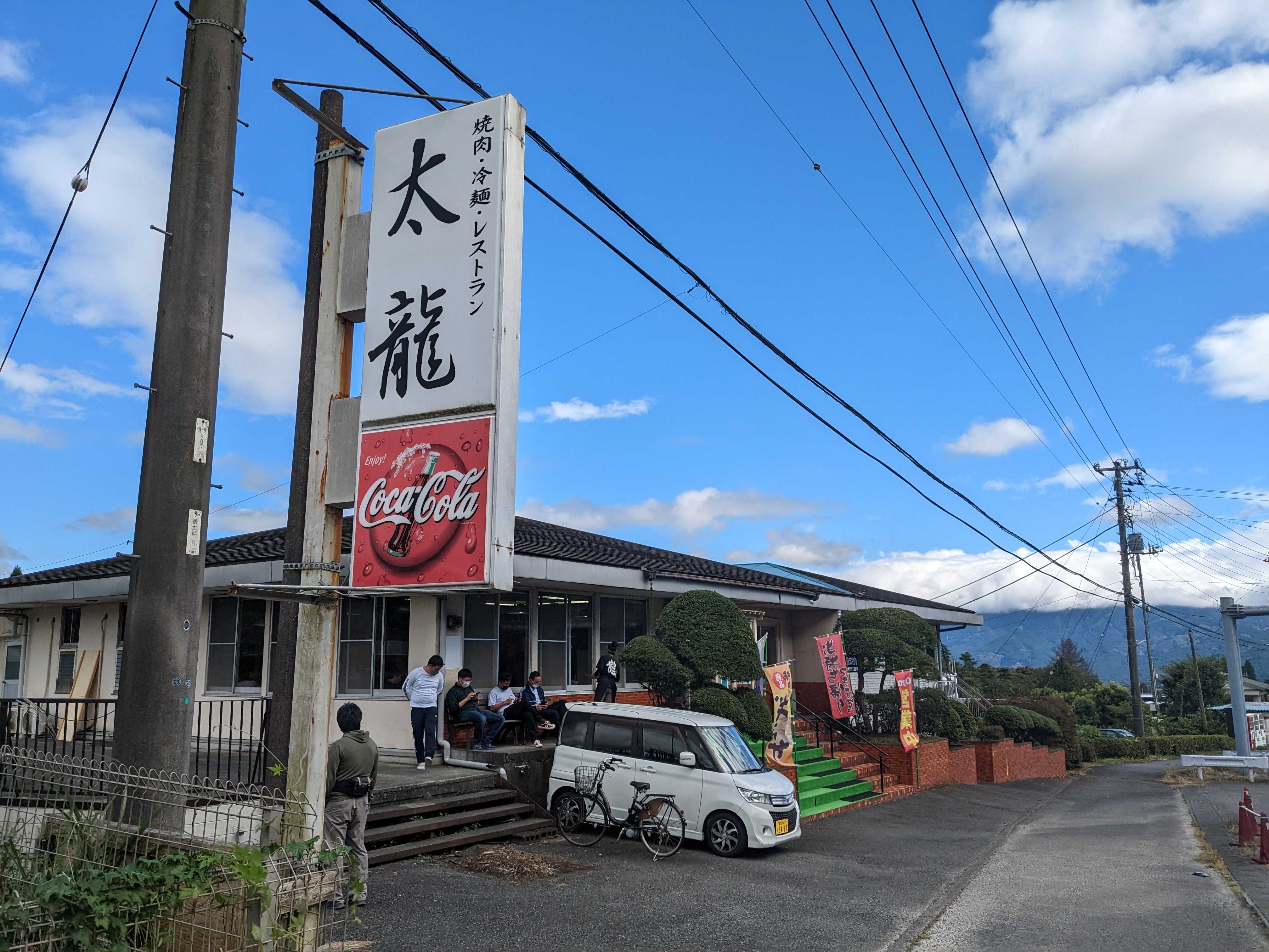 仲の良い会社の仲間3人集まり、春の猿ヶ京以来のキャンプに行ってきました。本当は、9月に行く予定でしたが、そのこと、毎週末台風だったので、延期となり今日にいたりました。行先は、山中湖にあるRECAMP山中湖。テニスコートをキャンプ場に作り直した新し目のキャンプ場のようです。まずは、源さんにうちに来てもらい、横浜の取締役邸を目指す。途中、第3京浜で源太郎が道を間違える。「第三京浜道路 下り線 保土ヶ谷IC 岡沢出口」でおりてしまう。正しくは、第三京浜から横浜新道に進み、川上ICで下りなければいけない。相変わらず学習しないな。その後、一時間以上遅れて取締役邸にたどり着き、東名に進み、一路、山中湖に向かう。東名も事故で渋滞があり、松井ICで下りて下道を進み何とか、御殿場に到着。午前中には、買い物を終え、昼を食べてキャンプ場の予定でしたが、御殿場についてまずはお昼ということに。焼肉レストラン 太龍 本店 住所 〒412-0006 静岡県御殿場市中畑1684-8 電話 0550-89-0816 営業時間 11:30~22:00 定休日 火曜日 駐車場 あり メニュー 太龍ラーメン 1,050円 [辛さ]おさえめ/辛口/激辛/超激辛前回、太龍ラーメンの辛口だったおで、今回は、激辛にしてみた。激辛でもおいしく食べれたので、超激辛でも行ける予感。次があれば、超激辛にしよっと。つづいては、取締役所望の馬刺しのお店、ミートショップ富士竹へ。ミートショップ富士竹 住所 〒412-0046 静岡県御殿場市保土沢17-12 電話 0550-89-2983 営業時間 9:00~18:30 定休日 木曜日 駐車場 有そして、キャンプ飯全般をゲットするため近所のスーパーへ。スーパーはイオン系のマックスバリュー。で、おおむね買い物が終わり、キャンプ場に向かう。RECAMP 山中湖 住所 〒401-0502 山梨県南都留郡山中湖村平野555 電話 CheckIn 13:00 CheckOut 10:00 定休日 木サイトはこんなサイト。ちょっと広いので、3人がそれぞれテントを張って、タープで居住スペースを作っても収まる広さ。まずはタープを張るとこんな感じ。山中湖近くなので、この先に富士山が見えるはずだが、あいにくの曇り空。一休み後、近くの温泉に行き、ひとっ風呂浴びたら、もう夕方。山中湖平野温泉 石割の湯 住所 〒401-0502 山梨県南都留郡山中湖村平野1450 電話 0555-20-3355 入館料 大人 900円 中高生 700円 小学生 350円 小学生未満は無料 営業時間 11:00~20:00 定休日 水、木曜日 駐車場 無料大駐車場完備(普通車150台)薪をつけ、手元のテーブルでは鉄板で焼く。その焚き火を利用して、チーズをスモーク。その後、肉などをやいて、食事や酒を堪能する。翌朝は、am6:00頃起きて、もようしものを出す。珍しく、源さんや取締役が私よりも早く起きだし、活動してました。その後は、今回とっておきのコーヒー豆を挽いてのモーニングコーヒーでした。コーヒーはパーコレーターで作ったのですが、ガソリンのバーナーで作ったら、火が中央になく、煮沸が起きにくくて色があまり出ませんでしたが、私のガスバーナーで、ガツガツ煮沸させたらおいしいコーヒーができました。以前、失敗したのも、これが原因見たい。で、朝食にサバサンドと目玉焼き、ヨーグルトをいただきました。雨は降らなかったのですが、夜露で濡れたので、乾かし後の撤収でしたが、乾くのを待つ間一瞬だけ富士山が顔を出す。んーー。、拝めてよかった。帰りにはとっておきの吉田うどんをいただく。前回も寄った渡辺うどん。開店11時ですが、取締役が10時30分くらいから入れるし食べれるとのことで、10時27分頃に入店。渡辺うどん 住所 〒401-0512 山梨県南都留郡忍野村内野545-2 電話 0555-84-2462 営業時間 11時00分~14時00分 定休日 水曜日 駐車場 有 メニュー 肉玉うどん(大) 650円 肉玉うどん(中) 550円 肉玉うどん(小) 450円一番乗りならぬ二番乗りでした。肉うどん(中)450円をいただきました。吉田うどんには、辛子味噌を入れて食べる文化があり、試しに入れてみました。なかなかおいしいので、家に常備したいな。徳庵 辛子味噌 500g チューブパウチ 詰め替え 唐辛子みそ とうがらし味噌 一味唐辛子 香辛料 辛い 調味料 辛党 BBQ キャンプ アウトドア 【メール便 送料無料】【賞味期限 2023年2月28日】あと、取締役が寄りたいといった角屋豆腐店に立ち寄り、帰路に着く。帰りは15時ごろ。たっぷり楽しんだ1泊2日のキャンプでした。また来年かな。