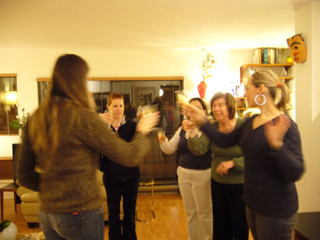 今夜は、抹茶の学校の生徒二人(最年長クラスと真ん中の抹茶のクラス)のおばあちゃん(つまり、この生徒の二人、おばあちゃんの孫にあたります。)が、孫が日頃お世話になっている先生達(ほぼ学校の先生皆)にを彼女のお家にディナーご招待してくれました他の先生の話によれば、去年も、このディナーご招待があったそう・・・抹茶は、初めてだったので、ワクワクでした。行く前からおばあちゃんの住んでいるお家の想像・・・アパートに住んでいるのかな?それとも、一軒家???行ってみたら、一軒家に住んでいました。3階建ての素晴らしいお家壁のあらゆるところにアートが飾れてありました。とりあえずは、乾杯っ皆、先生達がおばあちゃんのお家に揃ったら、とりあえずは、乾杯皆さん、シャンパーンを飲んでいましたが、抹茶は、お酒はダメなので、クランベリーとぺリエを割った飲み物を。バリバリ食べてしまった・・・ディナー前のアパタイザーは、ナッツ色々とチップス。仕事後でお腹が空いていたので、先生皆、バリバリ食べていました。抹茶も・・・ですCake of Omlettesまず最初におばあちゃんの手作りのキャロットスープを食べました。これが、とても美味しい・・・食べるのに忙しくて、写真を撮るの忘れていましたそして、その次に出て来たメインディっシュが、これ”Cake of Omlettes"(ケーキ・オブ・オムレツ)という名のディッシュ。よ~く考えたら、抹茶の母上も、昔、これ、よく作ってくれてましたでも、こんなお山にはなっていませんでしたがね。(爆)Cake of Omlettesの上には、ぷっくりした海老が乗っていて、ホワイトソースが掛かっています。赤いのは、赤ピーマンです。中身は、ポテト、マッシュルーム、ほうれん草が入っていて、卵で全てをとじてありますこれは、とても美味しかったです・・・そして、最後には、これまた、おばあちゃんが作ったチョコレートムース一人づつ、小さな丸い容器にチョコレートムースを作ってくれて、これが、又、と合うっこれも、写真を撮るの忘れましたっおばあちゃん、このディナーをする為に一日、お料理していたのかなこのおばあちゃん、元スペイン出身なので、お皿やお家のインテリアも、スペインしていました。デザートを食べている時だったか、なにかの拍子で、それぞれの先生のダンナさんや自分のお○ら話で盛り上がってしまい、抹茶は、笑い泣き状態・・・ナプキンで涙を拭く程でした・・・もちろん、英語で話しているのですが、英語だと微妙な表現も日本語と違って出来て、その時の微妙な”アクション”の説明を聞いているだけで、笑えるまさか、そんな話で盛り上がるとは、思いませんでした。(爆)ま~、そんな話は置いておいて、ディナー自体、とても楽しく&美味しかったです。そして、学校の先生達と、学校以外の話が出来たのも、嬉しかったです。学校で働いている時は、マジに忙しくて、仕事の話をするのも、やっとこさっとこ・・・抹茶も、いつも学校の廊下を走りまくっていますからねいやはや、楽しいディナーの夜でした・・・おばあちゃん、ディナーご招待、有難う