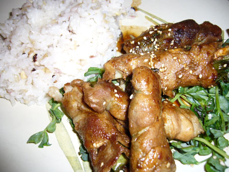 クックパッドの定期レシピメールを受け取っていて、最近、この”えのきとネギの豚肉巻き”のレシピメールが来たので、早速、作ってみました。しかーし、週末に食料買出しに行った時に、えのきを買うのを忘れて、しょうがなく、冷蔵庫に残っていたマッシュルームを薄く切って、ネギと一緒に巻き巻きしましたマッシュルームとねぎの豚肉巻きもちろん、初めて、今回、このレシピを作ったワケですが、なかなか美味しかったです巻く時に、あんまりネギをムリして入れない方が、グッドです。食べる時に、ネギネギしてしまって、あんまり美味しくなくなっちゃうので・・・使ったレシピは、こちら えのきとネギのテリテリ豚肉巻き♪ by ぎまーる今度、作る時は、マッシュルームじゃなくてちゃんとえのきを使って、巻き巻きしたいと思いますっ ここ2,3日、皆さんの所へ遊びにいけなくて、ごめんなさ~い。今週は、かなりお疲れです・・・明日かあさってくらいには、皆さんの所に遊びに行けると思うので、待っていてくださいね~