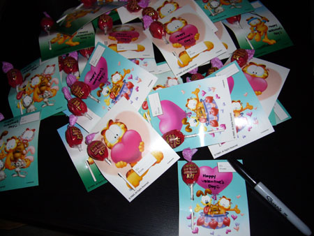 来週の木曜は、バレンタインデーです。こちら北米では、バレンタインデーは、恋人同士だけじゃなくて、親から子供、子供から親、友達同士などなど・・・色々で、幅広いところがいいっバレンタインデー、抹茶の学校でも、スクールカレンダーに”イベント”として入っています。もぉー、こういうイベント大好きなので、抹茶一人で盛り上がっちゃいますっ先週末だったか、来月のお便り作成している時から、バレンタインデーにどんなアクティビティを一日通してやるか考えてました。やっぱり、やるなら、いつもの事ですが、子供達にとって楽しい物をやりたいそして、抹茶も楽しみたい(それは、違った)結構、こういうイベントがある時は、”自分が子供だったら、どういうのをやったら楽しいかな~”と考えますね。そして、自分がクラスを担任しているので、こういうイベントの時は、どんな事をするか、かなり決められるので(今月は、とりあえず、自分が決める番だし)、担任という立場がかなり嬉しいです話は脱線しましたが、今日は、友達、家族、そして、自分のクラスの子供達へのバレンタインデーの買い物を近所でして来て、家でゴソゴソとバレンタインプレゼントのラッピングをしたりしていました。そして、自分のクラスの子供達には、抹茶とパートナー先生からのバレンタインデープレゼントの1つとして、これにしました。抹茶バレンタイン工場こういうグディーを買う時に一番考えるのが、パッケージに入っている個数とデザイン・・・クラスに生徒30人近く抱えているので、その数量入っている物、そして、ユニセックスなキャラの物を探す。最初は、カードとグディーは別に買わないとダメか・・・と思っていました。出来れば、男の子と女の子で、それぞれ人気のキャラの物とにしたかったのですが、クラスの予算上、それはムリ近所のお店を何軒か覗いて、やっと見つけたのが、このカード付きガーフィールドのバレンタインロリーポップ(ペロペロキャンディーです)で、しかも、30個入りっそして、安いっ大体のパッケージは、20個が多いのですが、珍しく30個入りしかも、カードも一緒に入っているとは、素晴らしい・・・少ない予算でまかなっている抹茶クラスには、嬉しい・・・(爆)ガーフィールド、中高生の時に読んでいました。懐かしい・・・今の子達は、知っているのか疑問に思いつつ、キャラがユニセックスなので、まぁ~いいかと大袈裟。(爆)早速、カードにひとつづつ、ロリーポップを差していき、それから、ペンでカード一枚づつに”Happy Valentine's Day:)"と書き、地道な作業・・・パートナー先生に、こういうのはやらせれば・・・とも思いつつ、明日まで待っていられないっお願いしても、すぐにやってくれないし・・・と考えると、やっぱり、自分でやるのが一番となる自分でも、いいんです、こういう細かい作業、だぁ~い好きっちまちま&コマゴマしている程、好きだったりします。こういう事をして、自分の貴重な休日が・・・(爆)カード4種類ガーフィールド4種類の絵柄カードでした。今日は、ペロペロキャンディーをカードに差して、”Happy Valenine's Day"を全ての書き終わりました。今週中には、クラス全員の名前、そして、自分の名前。それから、パートナー先生に彼女の名前を一枚づつ書いてもらって、出来上がりです作業をしていたら、抹茶も、1個、欲しくなっちゃったな~(爆)久々にお店で見たガーフィールド・・・懐かしすぎて、一人でケラケラしちゃいました大人気のぬいぐるみ!お誕生日:なしサイズ:約35cmタイ・クラシック(Ty Classic)ガーフィー...アンカーホッキング ガーフィールドマグ ハンモック◎ガーフィールド ピンバッチ W Mサイズ [ Garfield ] 3.1cmFevesフェーブ ガーフィールドTherer's no such thing as too much coffeガーフィールド飲み放題!コーヒータイムする?バブ...