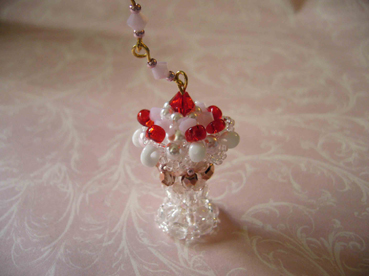 へ里帰りした時に買って来たビーズスイーツセットをず~っと放りっ放しにしていて、見る度に、”早く作りたいな”と思っていました。2,3日前から風邪を引いていて、やっと調子も良くなって来たので、昨夜から作り出し、今朝起きて、昨夜の続きを続けて、完成しましたぁ~イチゴパフェ携帯ストラップ作り方の図を最初見た時は、難しいかな~っと思いましたが、実際、図に沿ってやってみると結構簡単ですこのイチゴパフェの頭の鎖のビーズ部分を作り方に沿らず、他のビーズをちょっと足して作りました。イチゴ大好きっ子なので、このビーズイチゴパフェが可愛く出来て満足ですぅーもう1個ビーズスイーツセットを買って来たので、そちらも時間がある時に作りたいと思います早速、このイチゴパフェを携帯に付けようかなっ今度は、ビーズバッグにも挑戦したいなっキラキラビーズの豪華なチャームPRINCESS BAGセレブチャームキット PB-3ビーズキット ピンクレディバッグスワロフスキー使用ビーズキット ウェディングブーケバッグ(ピンク)スワロフスキー使用ビーズキット ウェディングブーケバッグ(ブルー)スワロフスキー使用ビーズキット ヴィヴィアンバッグ ブラック