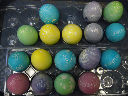 Easter(イースター)も間近なので、クラスの子供達とイースターエッグ作りをしましたまずは、抹茶が学校に到着後、すぐに卵を茹でました。じゃないと、後で・・・な~んて思っていると、とてもじゃないけど、時間が無いですからね~っそして、午後に、子供達とデザインを卵に描き、色づけをして、完成っイースターエッグ確か、去年のイースターも同じ作り方で作りましたっいつ作っても、これは楽しいです鮮やかな色に仕上がるし、自分のデザインが、ど~んな風に卵に浮き出るかを見るのも楽しいっ卵が、2個余ったので、1個は、パートナー先生が作り、もう1個は、抹茶も作りました。抹茶のは、ブルーの花柄(左下2段目の最初のです。)ですこのイースターエッグ作りは、至って簡単カップにお湯を入れ、そしてフードカラリングを数滴、お酢小さじ1杯、油小さじ半分を入れ、掻き混ぜ、その中にゆで卵を1分程、入れて置きます。その後にゆで卵を出して、乾燥させるだけこういうのって、親御さんの忙しい家庭では、やらないだろうし、やっぱり、学校でイースターの伝統を教えたいものです。子供達も、イースターエッグ作りに興味津々だったし、抹茶も、いつもの事ながら、楽しめたので、一石二鳥でした。(爆)イースターとは、関係無いと思うけれど(爆)、最近、やたらと、卵が食べたくなっちゃいます放し飼い卵50個入一流シェフが好む小林養鶏の「特鶏卵」10個この「こく」たまりません!天然水で育った 産地直産 名古屋コーチンたまご【送料無料】純系...いばらきの恵、うまかっぺ 奥久慈卵のたまごかけご飯セットできました!奥久慈米と専用しょう...【送料無料※沖縄離島除く】dw201703たまごかけごはん用、たまご30個 ツバメファーム養鶏暦40年...