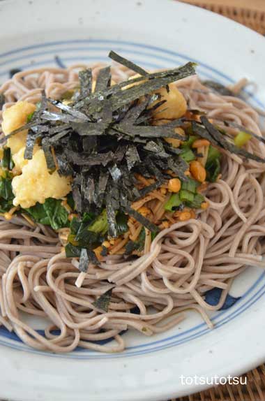 12月31日の娘と2人のお昼ご飯はぶっかけとろろそば。大晦日ですから蕎麦を・・・。年越し蕎麦は夜、年を越す前に食べるのが一般的ですが、我が家では夜ご飯の時に食べてました。でも最近は夜ご飯の時は炭水化物を食べないことがほとんどなので今年は昼ご飯に。エノキ、小松菜、ネギ、とり天、きざみ海苔、とろろ芋で。