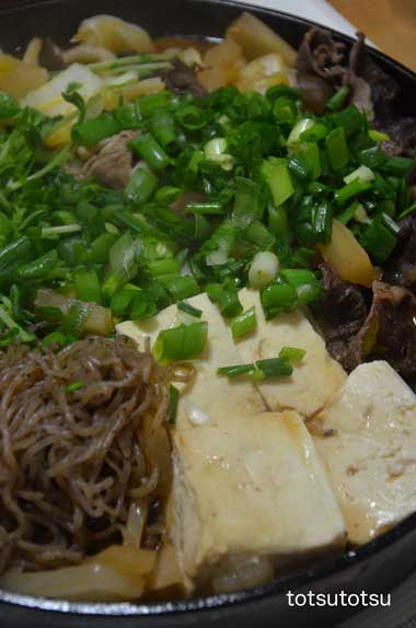 12月29日の娘と2人の夜ご飯はすき焼き。牛肉、豚肉、大根、白菜、ブナしめじ、エノキ、しらたき、豆腐、豆苗、ネギで。お肉たっぷり、でも野菜類はもっともっとたっぷりでした。