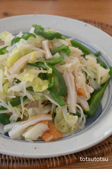 12月8日のダンナと2人のお昼ご飯はヒガシマルの海鮮皿うどん極細麺を使った皿うどん。細麺の揚げ麺にたっぷりのあんをかけた長崎皿うどんが大好きです。カロリー気になるけど時々無性に食べたくなります。今回は海鮮味のインスタント皿うどん。具となる海鮮が何もなかったので小ちくわで。小ちくわ、黒豆もやし、キャベツ、ピーマンで。麺はダンナに多めに入れて私はちょっと少なめ。具は2人で3〜4人分作ってたっぷりかけて食べました。