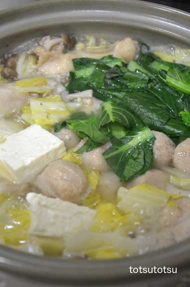 12月31日の娘と2人の夜ご飯は鶏手羽元と白菜の鍋。年末は忙しいので鍋が多くなります。今夜は鶏手羽元とた〜〜っぷりの白菜の鍋。鶏手羽元、鮭と鱈の団子、白菜、ブナしめじ、エノキ、小松菜、豆腐で。味付けは塩、粗挽き黒こしょう。さてさて後1時間半で新しい年。まだまだ掃除も終わってなくて、これからおせちの準備も・・・。今年もバタバタ家事をしながら終わりそうです。