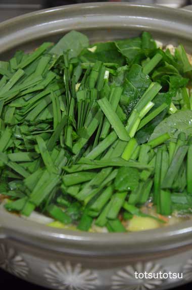 12月22日のダンナと2人の夜ご飯はキムチ鍋。豚薄切り肉、エノキ、ブナしめじ、白菜、小松菜、ニラ、豆腐で。野菜はものすご〜〜〜くたっぷりでいただきました。