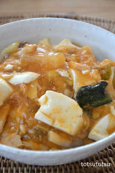 12月17日の1人のお昼ご飯は前日の鍋の残りを使って豆腐たっぷりの中華丼。鶏手羽元と白菜の鍋の残りに白菜と豆腐をプラスして水溶き片栗粉でとろみをつけて、雑穀米のご飯の上にたっぷりかけていただきました。雑穀米のご飯は70g。豆腐は150g。具はた〜〜っぷり2人前。