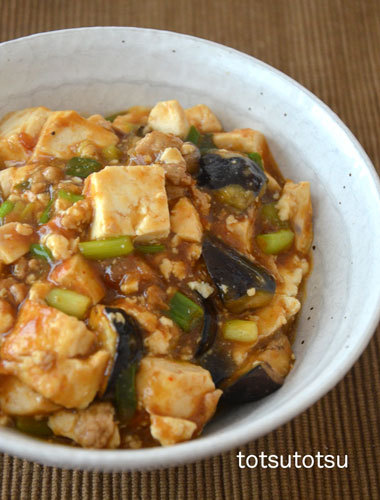 1人のお昼ご飯は麻婆ナス丼。絹ごし豆腐もナスも多めで。具はた〜〜っぷり2人前。雑穀米のご飯は90gくらい。
