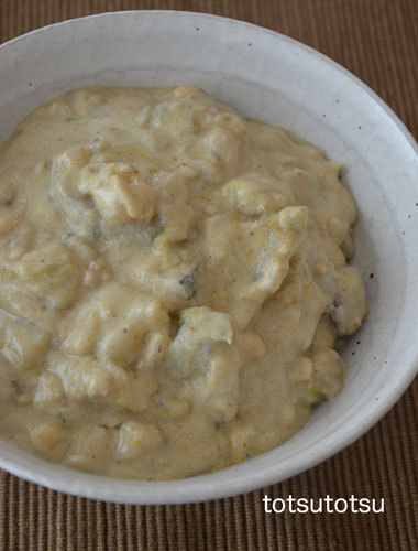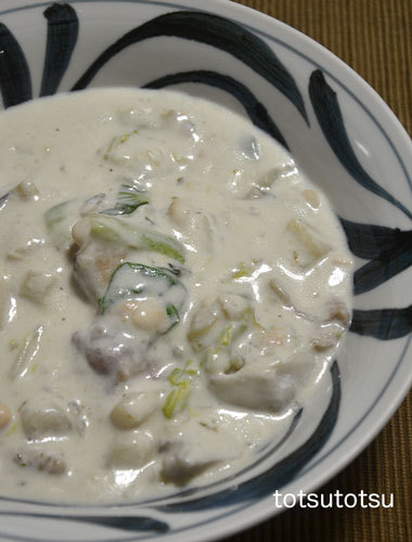 昨日の夜ご飯はシチュー。買ってきたタコマリネ、サーモンのサラダと一緒に。時間が無くてサラダは買ってきちゃいました。作り始めてタマネギが無いことに気がつき、コストコで買ったクラムチャウダーでシチュー。とりもも肉、白菜、レンコン、エリンギ、ミックスビーンズの水煮、チンゲンサイを蒸し煮にして、クラムチャウダー缶と豆乳を入れ塩こしょうで味を整えて出来上がり。