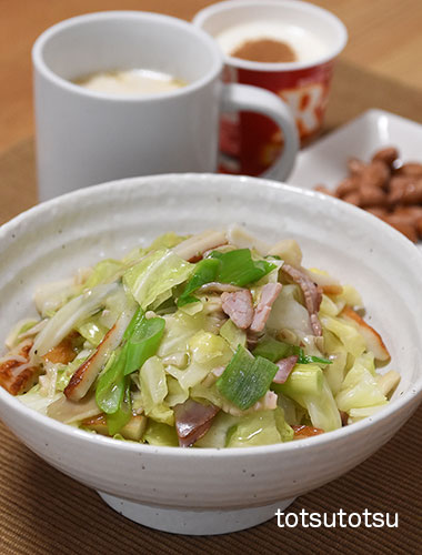 朝ご飯は中華丼。ハム、ちくわ、きのこミックス、た〜〜っぷりキャベツ、九条ねぎで。ご飯は雑穀米で100gくらいです。中華丼、酢ピーナッツ、自然栽培の玄米甘酒とリンゴ酢入り豆乳、R1ヨーグルト+シナモン。