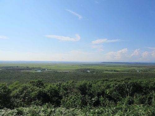 細岡展望台の眼下には、釧路川の蛇行を前景に約1万9千ヘクタールの原始の面影をとどめている釧路湿原が広がり、彼方には名峰 雄阿寒岳・雌阿寒岳の連なりを見ることができます。