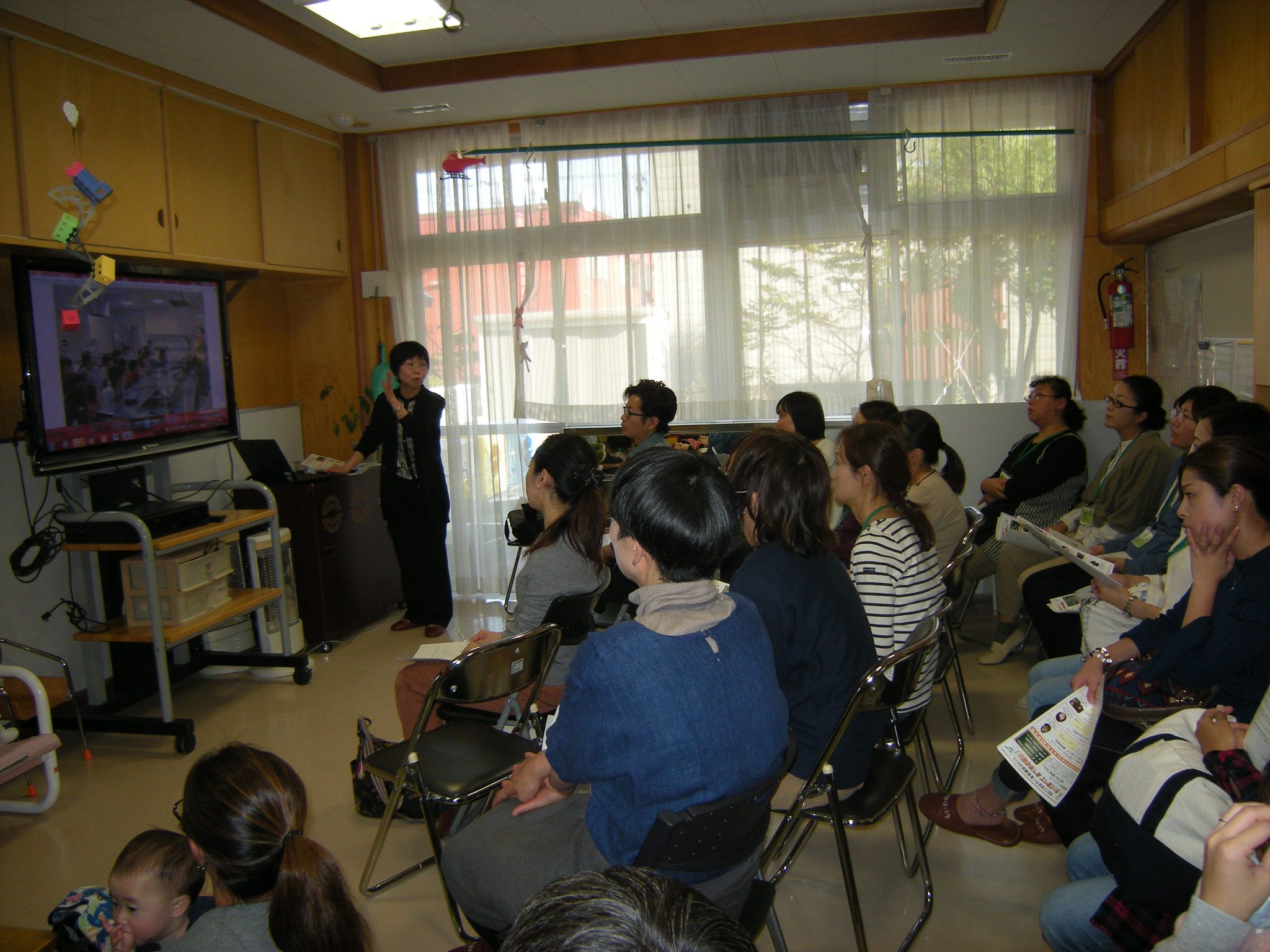 今年は、札幌市南区の札幌市立もいわ幼稚園において開催し、園児と保護者合わせて約40名の方に参加して頂きました。