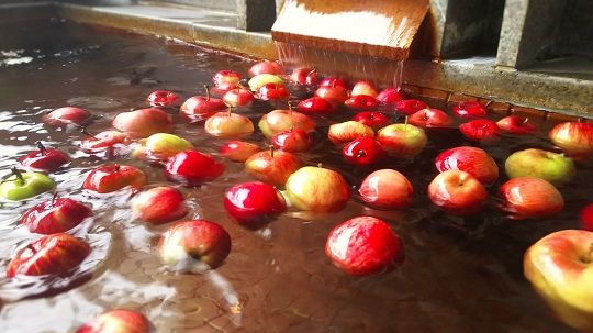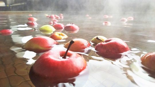 露天風呂の浴槽に浮かぶ  りんご・りんご・りんご …