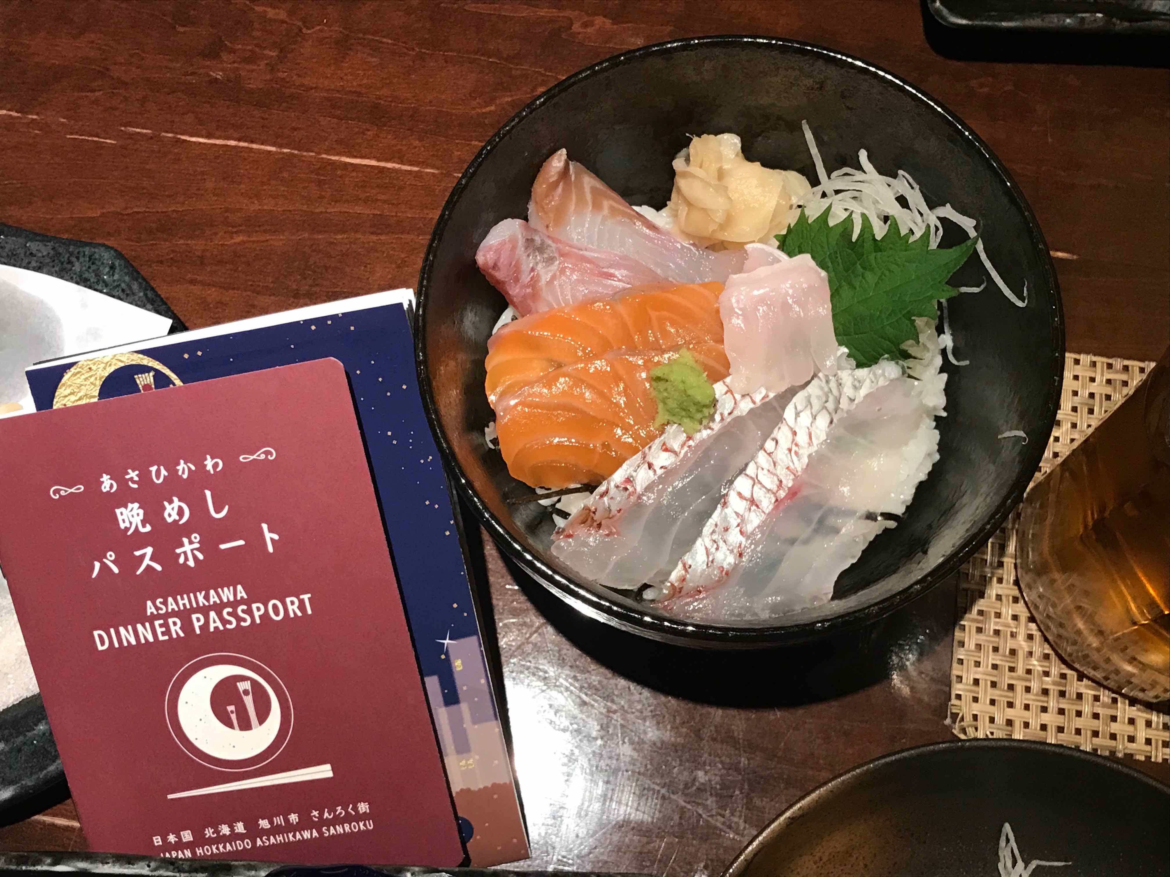 そしてさらに!海鮮丼どーん!丼が小ぶりかと思いきや、結構なボリュームがあって、食べ応えがありましたよ。 「あさひかわ晩めしパスポート」
