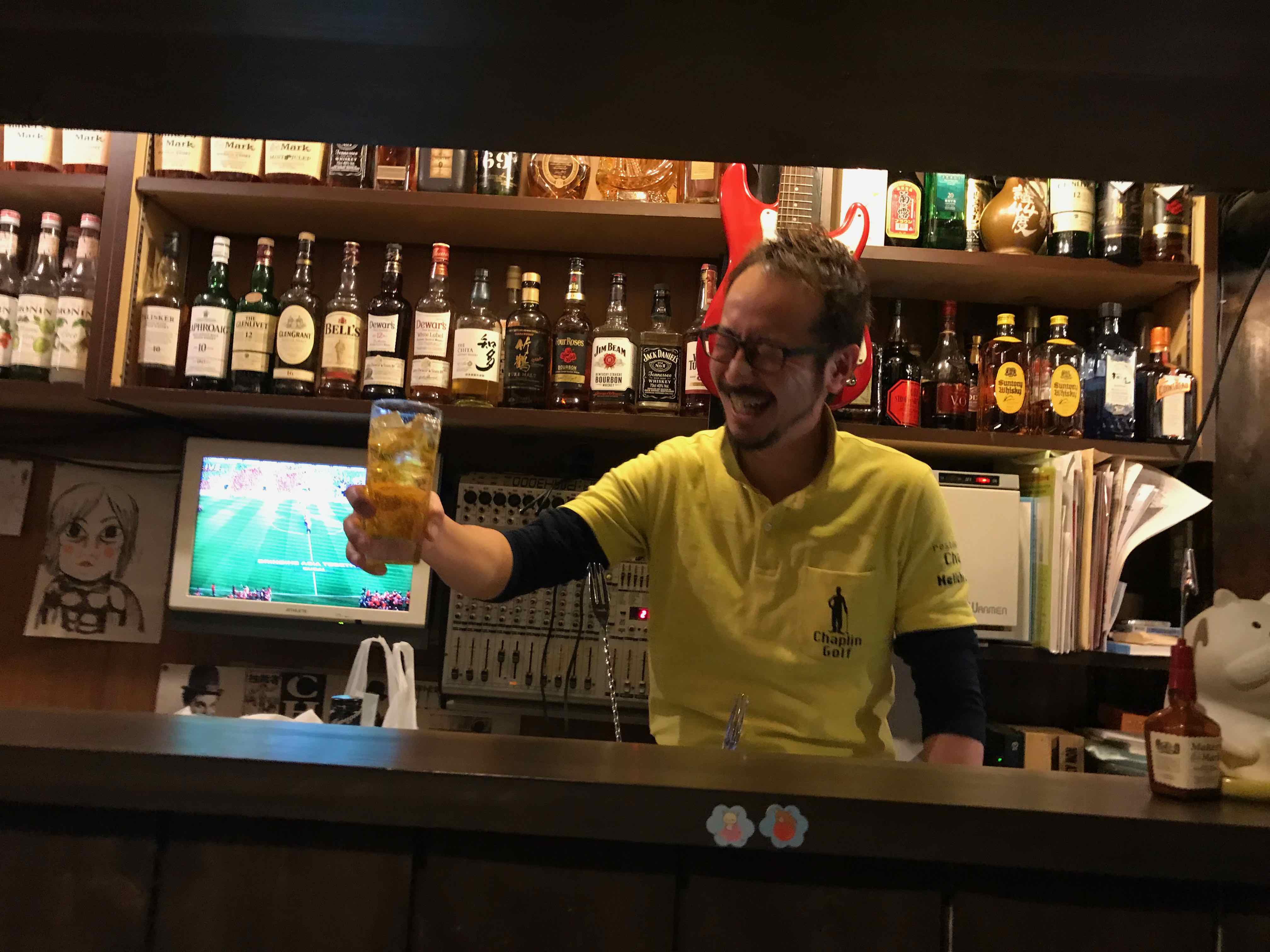マスターに、適当に作ってくださーいとお願いして、アプリコットクーラーを出してもらいました。入店からわずか数分、なぜかお互い爆笑しています。楽しい…。