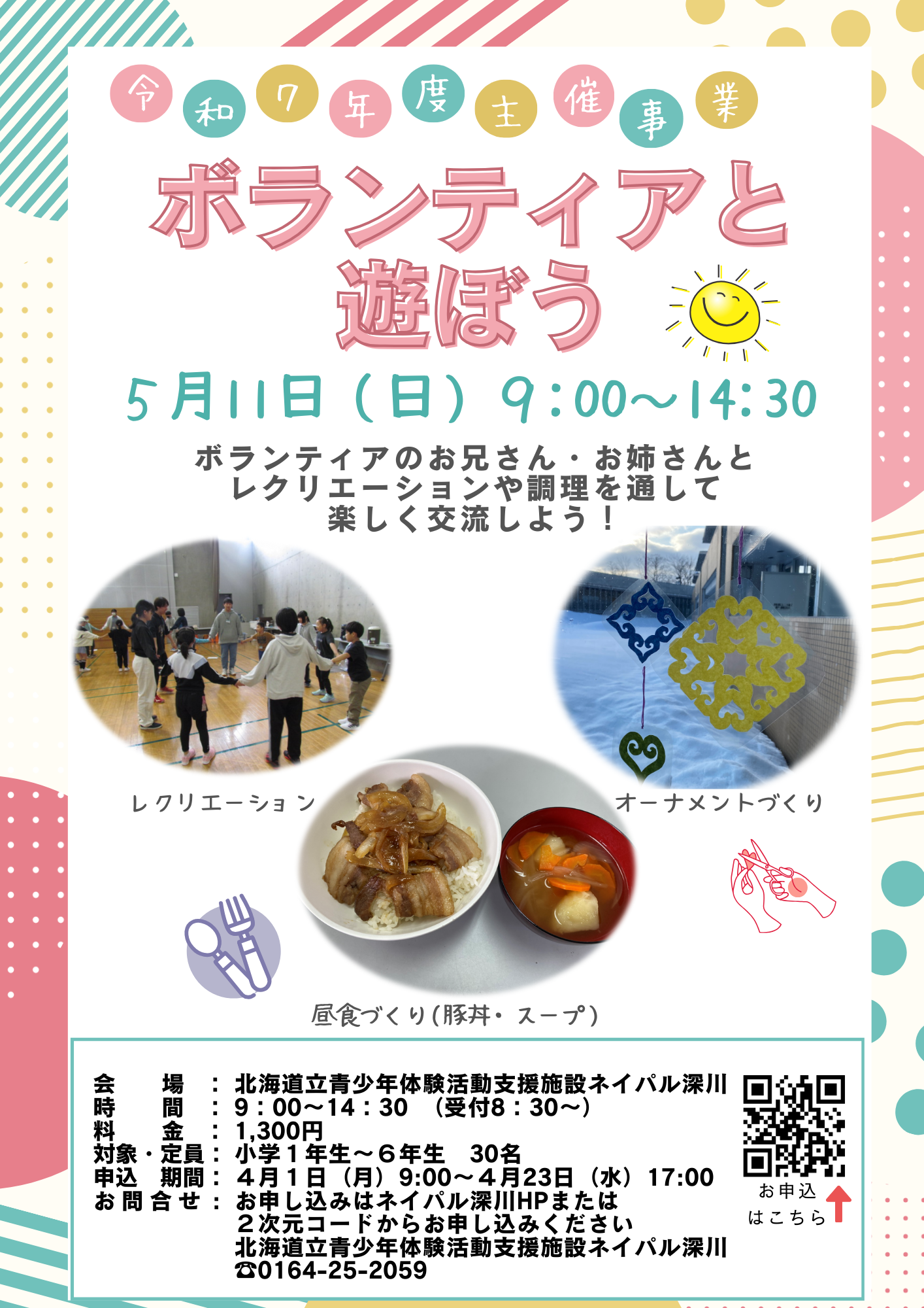 【ボランティアと遊ぼう】 5月11日(日) 日帰り 対象:小学1年生~6年生