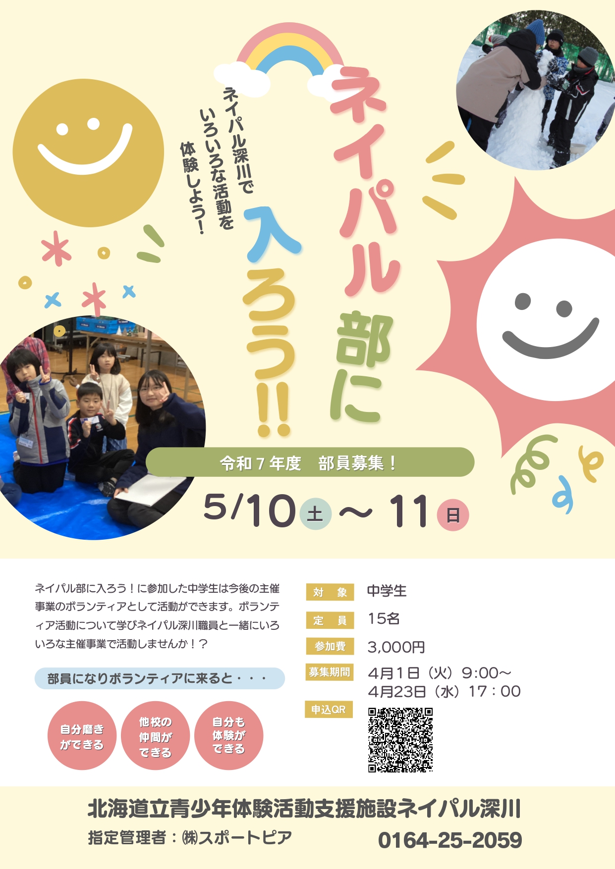【ネイパル部に入ろう!】 5月10日(土)~ 11日(日) 1泊2日 対象:中学生