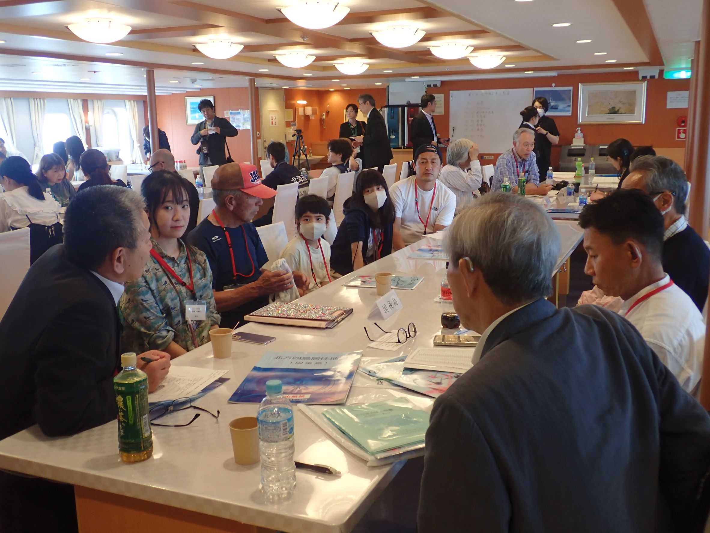 交流会では、四島を訪問したときの写真で当時を懐かしんだり、4世である小中学生の方の参加もあり、元島民の皆さんの話をしっかりと聞いていました。