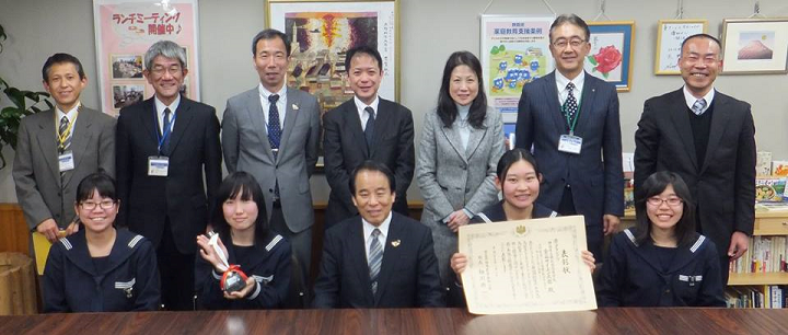 「静岡県教育委員会」より、静岡県内の高校生の活躍をお届けします【高校生ビジネスプラングランプリで準グランプリを受賞した藤枝北高校食品サイエンス部の生徒が教育長を表敬訪問しました!】 「第4回高校生ビジネスプラングランプリ」で準グランプリを受賞した、藤枝北高校食品サイエンス部の生徒が、1月30日、教育長を表敬訪問し受賞の報告をしました。高校生ビジネスグランプリは、若者ならではの自由な発想や創造性を活かし、人々の生活をより良いものに変えるビジネスプランや社会的な課題を解決するビジネスプラン等を競い合う大会です。 今回、藤枝北高校食品サイエンス部は、「天然糀菌による発酵の町プロジェクト」と題して、志太地域から発見した天然糀を利用し、地元企業と連携し純米酒の開発・販売を提案し、応募校324校2662件の中から準グランプリを受賞しました。生徒は、「地域の農家、企業の方からご協力をいただいて取り組んできた。今後も、発酵食品の普及や水窪町(浜松市)での活動「発酵の町プロジェクト」で、少しでも地域の力になれれば」と話しました。教育長は「夢が膨らむ取り組みで素晴らしい。次世代につなげて欲しい」とたたえました。