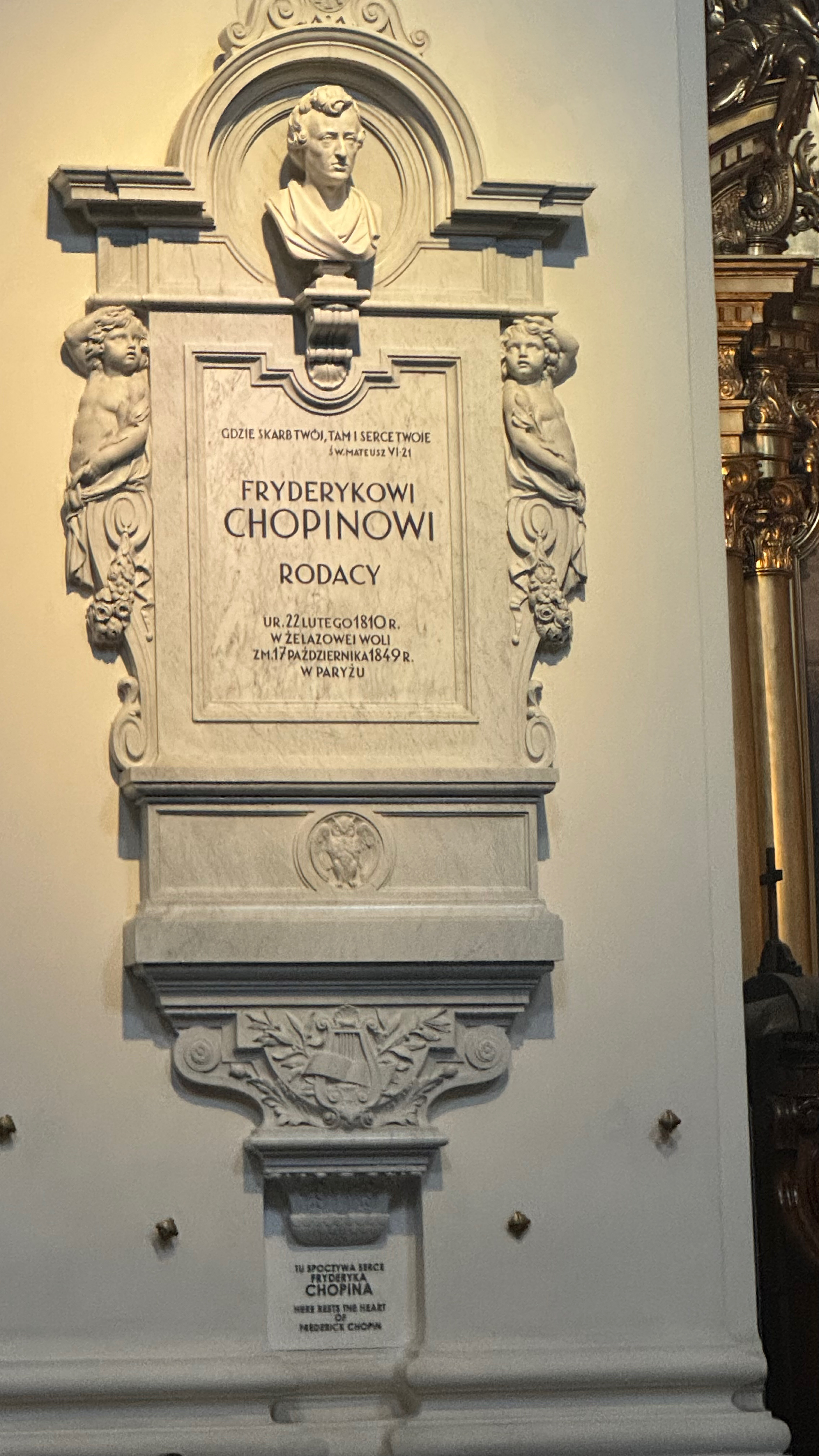 聖十字架教会にはショパンの心臓の埋められた支柱があります。それが目当てで行ったくらい。みんな神に祈ってたけど俺はショパンにありがとうを言いに。