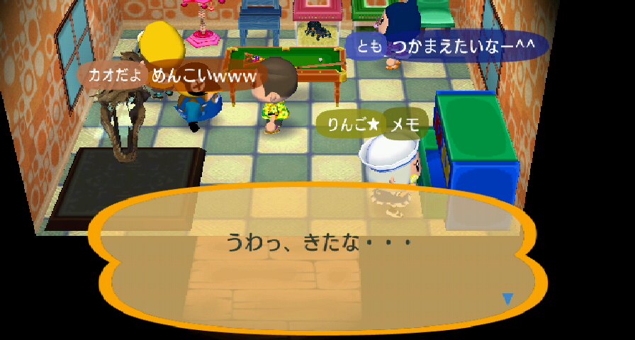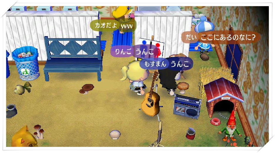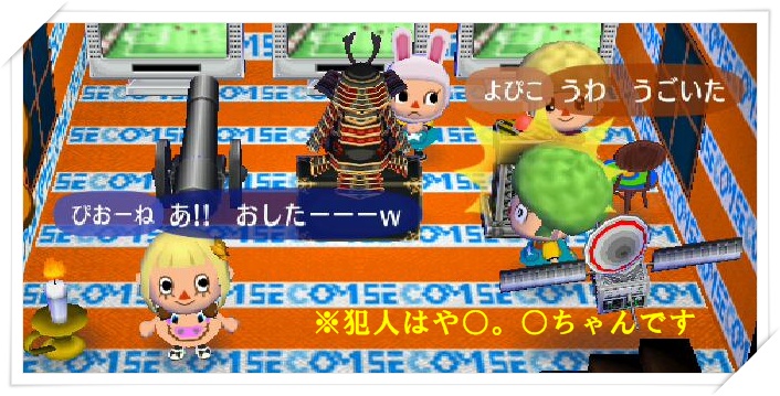 友達の村へトイレを借りに・・・女子トイレの前にうん○!この部屋は一体なんだろう??サイババさんの部屋があったからサイババ専用のトイレかなー? 癒し家の前で「赤カブマン」に絡まれるwww遅くまで通信ありがとうございました^^昨日は22時からレースだったんだけど気がついたら25時でびっくりでした間にミニゲームを挟んだから何とか遊べた感じでしたwww昨日は自ら皆に体当たりをかましていた気がします集中力がなくなって 避け切れなかった>< すみませ~~ん!!!いつも中間層は大混戦でイージーミスをするとビリになる!!そんなレースでしたおかまのMiiで集合したんだけど皆面白い顔で笑った~ なんやかんや 笑ったのが らっちさんのオリジナルMiiでしたwおわり。