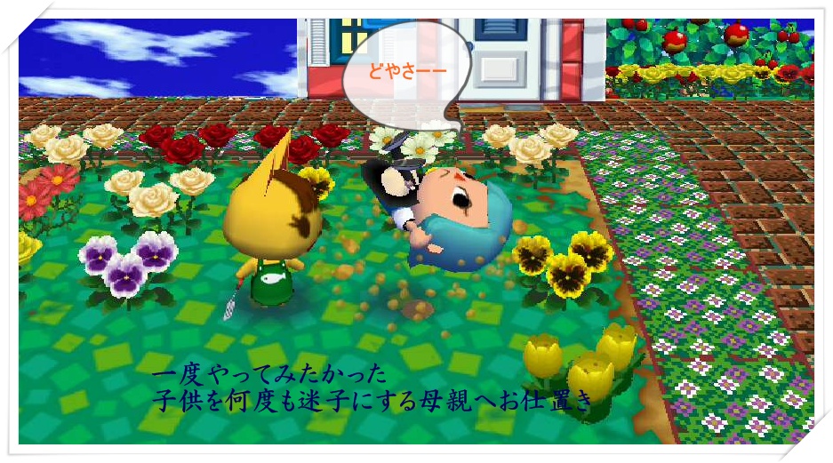 新しいニックネームを貰いましたオフクロvsオカン戦争勃発か??・・・どっちもどっちさw通信OFF生活に限界を感じましたwとりあえず開門してみる。久しぶりに見たあんこちゃんは、やっぱり逝っちゃってる訳で・・・wカツラに王様のひげそしてスイカって!!!私もやってみたくなったよ。のん様登場に沸くフルーツ村。友達に貰ったアメリカ配信の「旗」てっきり星条旗だと思って ワックワクしてたのにまさか村長の顔だとはwww友達に貰ったちえりちゃんの方がフレに評判良かった件もっと頑張れ任天堂www