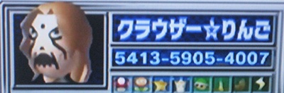 昨日は久しぶりにのんちゃんの村に遊びに行ったのに写真が1枚もないアセクサ・ガビ・ニコバン 個性的な住人がいて実に、りんごホイホイな村です二人で911さんに「このMiiを作って」ってヒタスラ需要のなさそうなMiiをリクエストしてました「アッハー波越」は ほ、欲しいかも!!!写真なしは寂しいので 載せるセイイチにホットドックを差し出す。ワリオ君主催のレースにも参加して来ました途中8000と9000の高レートな部屋になって邪魔しないように ひっそり走ろうかと思ったんだけどカメぶつけても速攻立ち上がってくる人ばかりなので遠慮なく投げてみましたwwwそこが楽しかったですあと後姿ですが、もっすん扮する将軍様がロケット(テポドン)に乗ってるのをまじまじ見ることができて爆笑した次回はた~さん主催の「ノリスコカップ」かな?ノリスコとはサザエさんの「のりすけおじさん」の女装ヴァージョン思い思いのノリスコのMiiで参加を募る予定だそうですwwwファンキー・おまる・ワルイージ・しばり予定だと聞きました決まったら ここにメモします^^う、うちも主催したいんだけど それはまた今度かな~午前中に家族で「DSiレッド」を探す旅にでたんだけどトイザラスにあったさっそく今日から「トモダチコレクション」で遊びます^^楽しみ~♪
