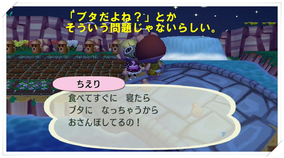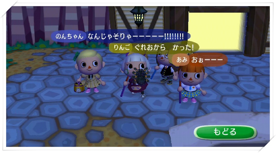 ちえりから始まっちゃった森の生活。うちの村は相変わらずフェーズ6なのでマスク着用ですw久しぶりにタモツになってみる。わが村にも是非来て欲しいがジョニーばりに伝説となっていますwいつの間にか海外配信があったらしい最近めっきり外人さんとも縁遠くなったので友達に頂けてうれしい^^触ったら明かりが付くの!!! とても素敵とりあえず、やちゃもちゃんに送っといた1こしか在庫がなくて... すみませんたぬきの奴 注文途中なのに店を強制的に閉めるんだもん開門を見かけたらアポ無しサンタしたいと思ってますとはいえ、やちゃもちゃんお触り会開いてくれそうだにょ~(と、プレッシャーかけてみるw)久しぶりのjuちゃん^^さそりが怖いのかMiiが怖いのか・・・うぉおお! いちごちゃんのブログにウチ出演してた^^トラバックしてみたいけどやり方がわからないのは秘密他の人のブログに写ってるのって面白いな~!終わり。