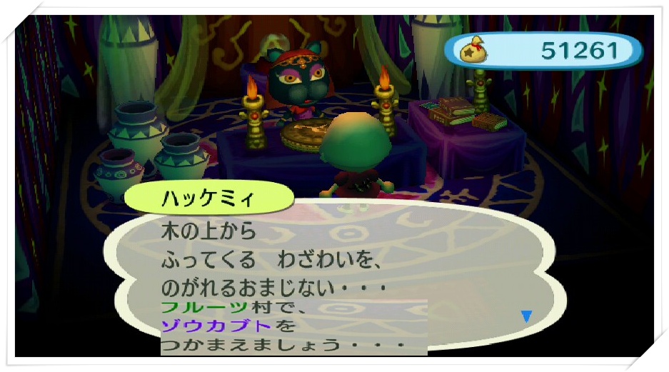 た~さんの村で事件発生UFO不時着。なんと、「たし~ろ星人」現る嫁に危険が迫ってる!!!堂々とした覗きっぷりに、うかつに近寄れないんだぜどうなる嫁!!!通報せんといかん!その頃のフルーツ村所長に報告。 指示を待つwこの日の為に持ち込んでいた「タシ~ロ砲」を撃ちまくる。安全は守られた・・・たぶんw お ま け モデルルーム見学に行ったら、ワリオ君の部屋が選ばれていた入れないし!!!