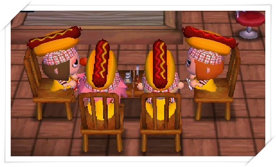 アメリカ配信アイテム「ホットドックのぼうし」「純喫茶はとのす」へ持ち込む7月4日はアメリカの「独立記念日」毎年の恒例行事「ホットドック早食い大会」に因んだアイテムらし。マック気分!!!前はこんな感じ。「りんご早食い」に興じてみる、ぴおーね。終わり
