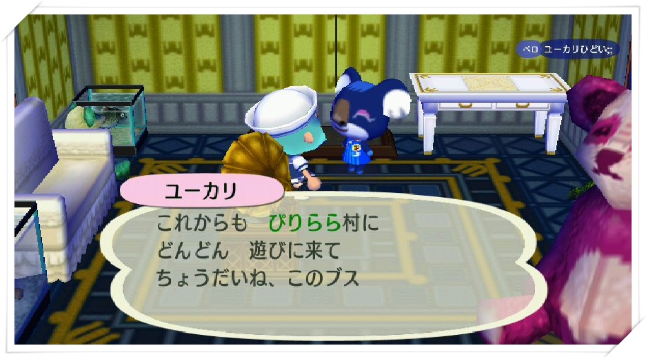 任天堂からの贈り物 その1気が利くなぁ任天堂からの贈り物 その2タコ配信任天堂からの贈り物 その3カブ配信スペシャルゲスト マイコー&バブルス遺産相続騒動後の写真。久しぶりに友達の村から引っ越してきた壁紙と絨毯がお菓子しりーずに見えるんだけど仕様??どんなお部屋なのか楽しみです^^