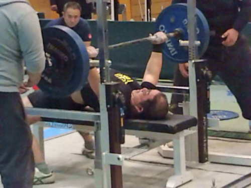 本日4月7日(日)は岸和田市で大阪府パワーリフティング選手権大会が開催され、我が所属のバリバリジムからは、前ちゃん、ふじやん、の2名が出陣。 所用で会場に来られないバリバリ会長に代わって、俺が2選手の応援&セコンドに就く手筈になっていたのだが、先日来の腸炎に伴う発熱により自宅待機とさせて戴いた。腸炎が感染性のものである可能性が高かったために他ならない。 バリバリ会長、「セコンドは任せて下さい」などと言っておきながらこのような有様になりスミマセン。。。 課長さん、コダイさん、一緒に岸和田市立総合体育館にゆく予定にしていたのに申し訳ありません。 何より、セコンドを当てにしてくれていたかも知れない、前ちゃん、ふじやん、ほんまにスミマセン。 腹痛と発熱は治まらぬが、今日も今日とて今日のトレ。 ホーム・トレーニングゆえ、感染の恐れがある体調不良でも他人にうつす恐れはない。【ベンチ・プレスの日】ベンチプレス 60kg*6 60kg*6 60kg*6(試合フォーム止めナシ) 60kg*6 80kg*6 100kg*6 120kg*1 140kg*1 150kg*1 155kg*1 ← 重い! 137.5kg*4 137.5kg*3 137.5kg*3(以上、試合フォーム止め有り) 122.5kg*4 122.5kg*4(以上、足上げナロー止め有り) ううむ。ダメダメだな。 60kgのウォーム・アップ1セット目、胸を張るために背中をグイッと反らした際、腸がちぎれたかと思うほど痛かった! しばらく息が出来なかったほどだが少し休憩すると痛みも引いたので、どうにか本日のメニューを完遂せり。 炎症を起こしていた腸がカラダを反らすコトで急激に引っ張られて、痛みを感じたのだろう。 トレーニング時以外は床に伏せっていたのだが、熱は今もって引かぬ。自業自得かも知れないが・・・。 ところで大阪府パワーリフティング選手権の結果であるが、バリバリジムの前ちゃん&ふじやんともに素晴らしい成績をおさめた模様。 本当に良かった!!
