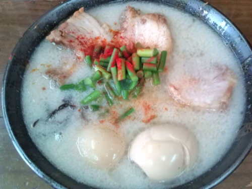 先々週から続く風邪の症状が治まらず、なおも体調不良・・・。 5月8日(水)。【ベンチ・プレスの日】ベンチプレス 60kg*6 60kg*6 60kg*6(試合フォーム止めナシ) 60kg*6 80kg*6 100kg*6 120kg*2 140kg*4 140kg*3 140kg*3(以上、試合フォーム止め有り) 130kg*3 130kg*3(以上、足上げナロー止め有り) お! メインセットの140kg、1セット目だけだが4発挙げ成功だ。前回トレーニングに較べて、全トレーニングのうちたった1セット、たった1rep増加しただけでもウレシイものだ。 5月9日(木)。【背・肩・腹の日】ワイドグリップチンニング 自重*8 自重*8 自重*8サイドレイズ 15kg×2*10 15kg×2*10傾斜シットアップ 30 前週は体調不良のあまり、このメニューをスキップしてしまったので約2週間ぶりの背・肩メニューなり。 おかげで翌日は広背筋上部と三角筋サイド部が軋むほどの筋肉痛となった。 5月11日(土)。 朝から掃除や洗濯などの家事を済ませ、昼メシを食べてから、少々昼寝。。。 目が醒めると・・・、なんと、これまで随分と苦しめられてきた熱っぽさや喉の痛みが、きれいサッパリと治っているではないか! 突然治ったのでビックリである。 それにしても発熱してから完治するまでに2週間も要してしまったのは、じつに情けないコトだ。トレーニングをやめないので、治るのに時間が掛かるのはやむを得まいが・・・。 体調が良くなると、がぜん酒が飲みたくなってきたぜ! 昼酒だ、昼酒!! ・・・いや。よそう。せっかく回復したらしいのだから、ベンチプレスの稽古にいそしむとしよう。【ベンチ・プレスの日】ベンチプレス 60kg*6 60kg*6 60kg*6(試合フォーム止めナシ) 60kg*6 80kg*6 100kg*6 120kg*1 140kg*1 150kg*1 155kg*1 157.5kg*0 140kg*4 140kg*3 140kg*3(以上、試合フォーム止め有り) 130kg*3 130kg*3(以上、足上げナロー止め有り) うん。まあまあかな。 メインセットでは、カラダの芯から爆発するような動きが出来たと思う。これからは元気にバリバリと鍛錬に励めるぜ。 5月12日(日)。 体調が良くなると、食欲もモリモリ湧いてくる。 愛馬ハーレー・ダビッドソン「ロード・キング」号を駆り、昨年開店したばかりの濃厚豚骨ラーメン屋さんへGO! なんでもココの豚骨ラーメンは、口の中で粘りつくほどの高濃度なのだそうな。「らーめん ど真ん中」(茨木市宇野辺2-13-11)。 メニュー・トップの「豚骨らーめん」(700円)を注文だ。 こってり濃厚ながらも臭みのないスープに、加水率の低い極細ストレート麺。具は炙りバラチャーシュー1枚、味玉半個、繊維と垂直方向に切られた極太メンマ、ニンニクの芽、ネギを搭載。カウンターには高菜、紅ショウガ、ユズ胡椒などが備えられており、お好みで味変可能だ。 ひと通り食べ終えると「替玉」(1玉150円)を注文だ。替玉には小振りながらブロック状の炙りチャーシューがついており、お得感アリ。半玉100円の替玉もある。 けっこう濃厚な豚骨ラーメンでも、替玉を投入するとスープが薄まってしまうコトが少なからずあるのだが、ココのスープは替玉に負けないストロングな味わいだ。 粘度の高いスープを最後のひと口まで飲み干した。【今年のラーメン 13杯目 ☆4.0】 トレーニングを気持ちよくこなせて、食べ物を美味しく食べられる。 健康とは、まことに素晴らしい。