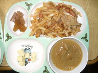 相変わらず超手抜きですが(^^;*焼きうどん (かいわれ大根、白菜、ニンジン、ソーセージ、シーチキン入り)*大根の煮物(大人の取り分け)*ベビーチーズ*お味噌汁(大人と一緒) (大根、豆腐)*イチゴです。リク、ソーセージだけ探して先に食べますソラ、もくもくとうどんをお口へいれますソラの大根いただき!!(≧∇≦)いいよ~♪僕大根苦手だから( ̄∇ ̄;それよりうどんおかわりちょうだいよ~~(^m^)フォークは大分上手に使えるようになってきたんだけどまだまだ手づかみが主体かな~まぁ気長に行きましょう(^^;今日のベストショット♪児童館にて・・・リクさんちょっとくつろぎ過ぎじゃありません??