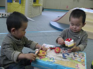 今日はとっても良いお天気でした♪♪ 最近のふたりは相変わらずモノの取り合いやケンカは多いものの少しずつ相手の気持ちを思いやる心が芽生えてきたよう大体いつもリクが持ってるモノを全部ソラが欲しがって取ってしまうパターンですが、無理やり奪い取ったにもかかわらずソラは必ず取ったら頭をペコペコと下げる(だったら取らなきゃいいんだけど・・・)リクはソラが転んで泣いていた時私が抱っこしても泣き止まないのを見てソラのお気に入りのタオルを探してきてソラに『ハイ(^^)』と言って渡してくれたり・・・思わず、へぇ~凄いじゃんと思ってしまった知らないウチに成長しているものなんだね(^^)ちょっと気になるのが、いつもいつもソラに取られてばかりのリクは持ってるモノを取られても全然怒らなくなってきちゃった事・・・本当に本当に大切な物は泣いて怒るけど大体は平気な顔で次に遊ぶモノを探しに行っちゃう取られなれちゃったみたい・・・反対に取られなれていないソラは、児童館でもリクにでも取られようものなら号泣して怒り出す・・・これが当たり前なのかなって思うんだよねあまりにリクは冷静に”あぁ取られちゃったから次の探すか…”というようにしてるもんだから、思わず『いいの?取り返しておいでよ』なんて言っちゃうわたし(^^;リクは取られたくない物はソラの行動をチラチラ観察しながら逃げながら遊ぶ知らないうちに二人の間に決まりごとというかルールみたいなものが出来てるみたいだねこっちの言ってる事もかなり理解できるようになってきたみたいで指示するとそのとうりに動いてくれる事が増えてきましたその分要求が通らないと分かった時なんかは凄い勢いで怒り出したりダメだと分かっている事なんかは陰でコッソリイタズラしたりと手に負えない事も増えてきたけどね(; ̄о ̄) 今日児童館でお話してたママが『二歳になったらもっと大変だよー』って言ってたそこには二歳半と一才の男の子がいたんだけど、お兄ちゃんの方がめちゃめちゃパワフル!!一秒たりともじっとしていなくて一緒に来ていたお婆ちゃんがずっと汗だくで追いかけまわしていよ・・・(汗) まぁ二歳になったらの事はその時に考えよう・・・今は今でいっぱいいっぱいだから( ̄∇ ̄;